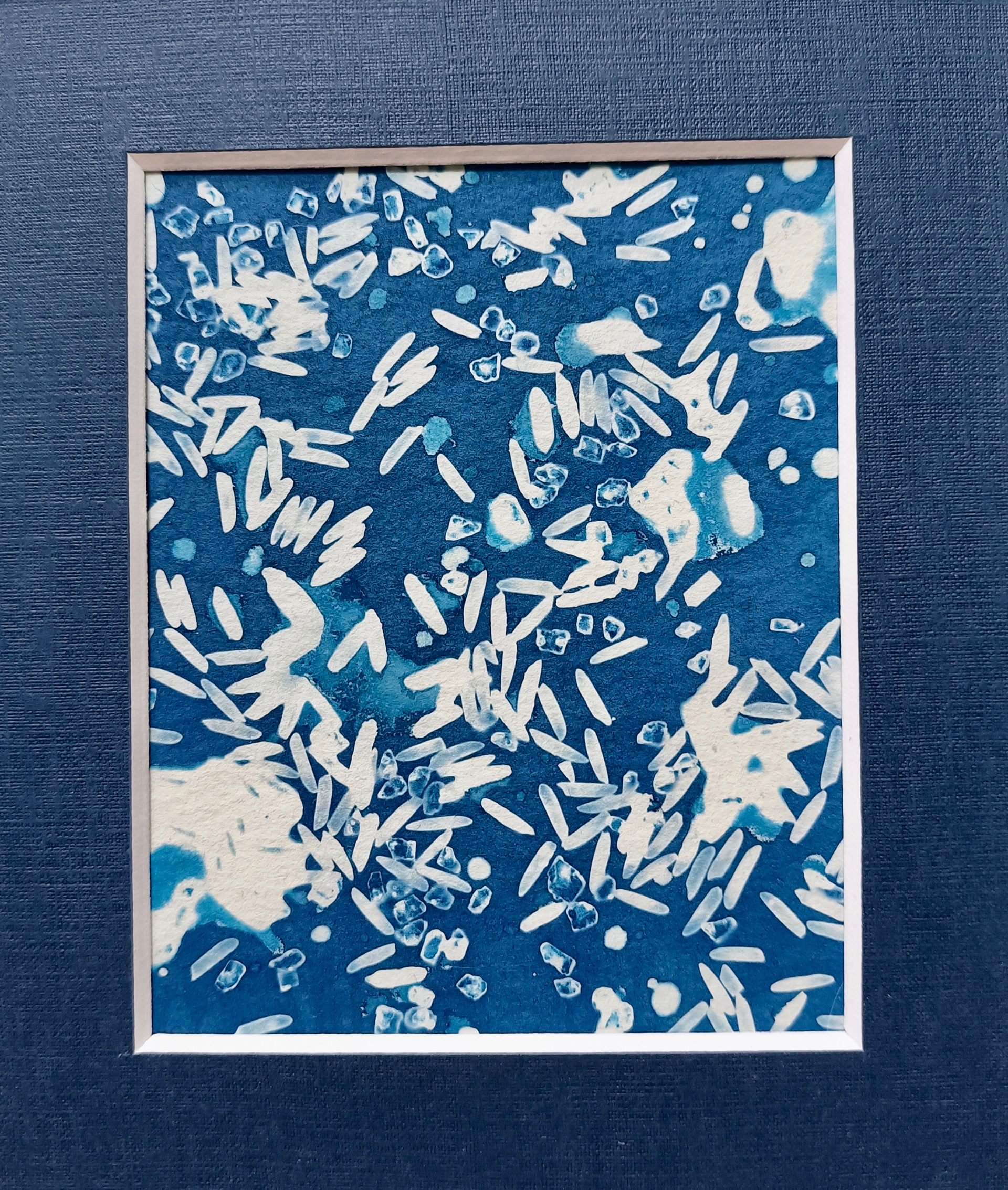In this practice I like to experiment with floral media as well as glass objects and elements such as salt, rice and nets, to obtain rich, grainy, abstract, modern textures.
